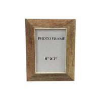 BIDK 5x7” Wood Picture Frame w/ White Resin Border: Lite Brown / MANGO WOOD