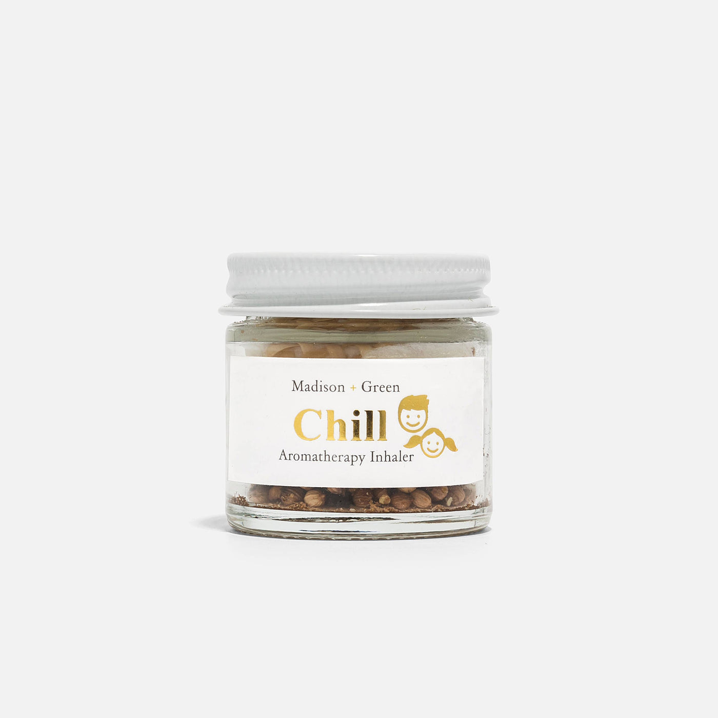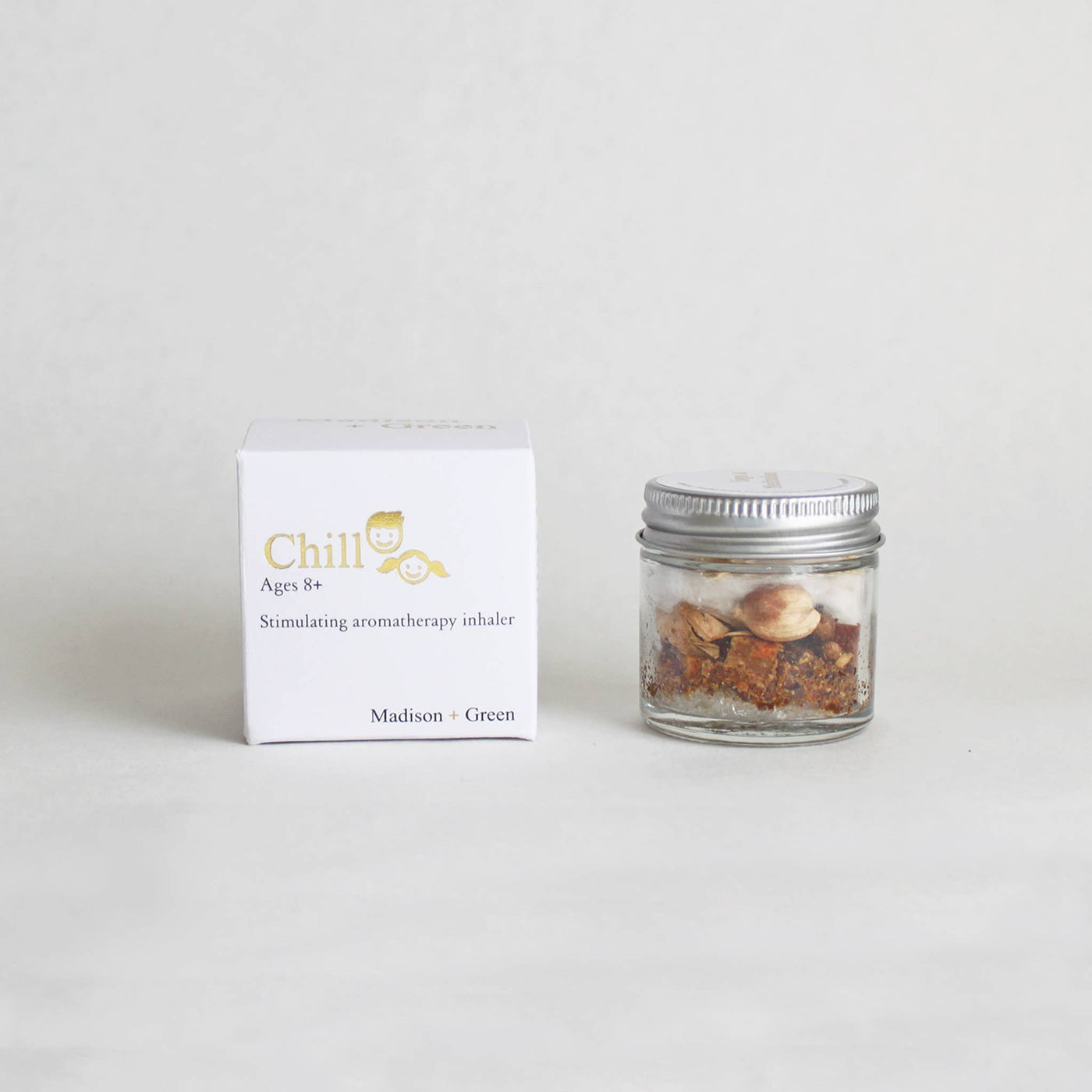 A unique, stress-relieving aromatherapy inhaler for everyday use. Every jar is filled with organic essential oils, inspired by medicinal French aromatherapy, and aromatic spices inspired by traditional Chinese medicine. All oil blends are formulated by a clinical aromatherapist. "Chill" Anxiety Relief Inhaler for Kids ages 8+ - Specially designed for kids and teens! Use this inhaler whenever feeling anxious, sad, upset, scared, worried, or overwhelmed. - Helps reduce stress, anger, frustration, restlessness, and fear - Calms and soothes - Boosts focus and attention ❃ Free gift box ❃ Lasts 3~4 months after opening Directions: Hold the jar 3~4" away from your nose, deeply inhale for 3 seconds, then slowly exhale for 4 seconds. Repeat as necessary. Ingredients: Essential oils (Eucalyptus, Spearmint, Lemon, Orange, Geranium), aromatic spices 𝑽𝒆𝒈𝒂𝒏. 𝑪𝒓𝒖𝒆𝒍𝒕𝒚-𝒇𝒓𝒆𝒆. 𝑾𝒐𝒎𝒂𝒏-𝒐𝒘𝒏𝒆𝒅. 𝑴𝒂𝒅𝒆 𝒊𝒏 𝒕𝒉𝒆 𝑼𝑺𝑨.