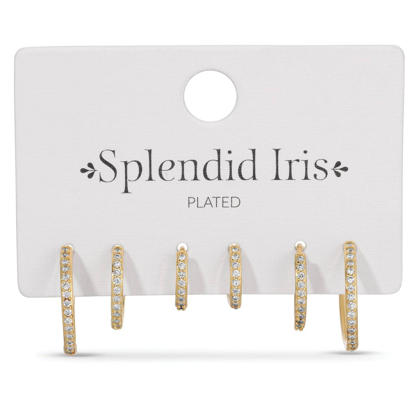 This set of 3 delicate huggie earrings is the perfect trio for effortless ear styling. Each huggie features shimmering pavé cubic zirconia and comes in varying sizes for versatile layering or a simple, elegant statement when worn alone. Crafted in your choice of  18k gold plating or rhodium plating, these huggies are a must-have for everyday sparkle with a touch of luxe. Whether you're curating a stacked look or keeping it minimal, this set offers endless styling options. Perfect for gifting, this set is a stylish choice for birthdays, anniversaries, or just because. Whether she’s building her jewelry collection or loves having elegant options at her fingertips, this earring set makes a beautiful statement of sophistication and charm. Set/3 Huggies 18k Plated Gold or Rhodium Brass Base