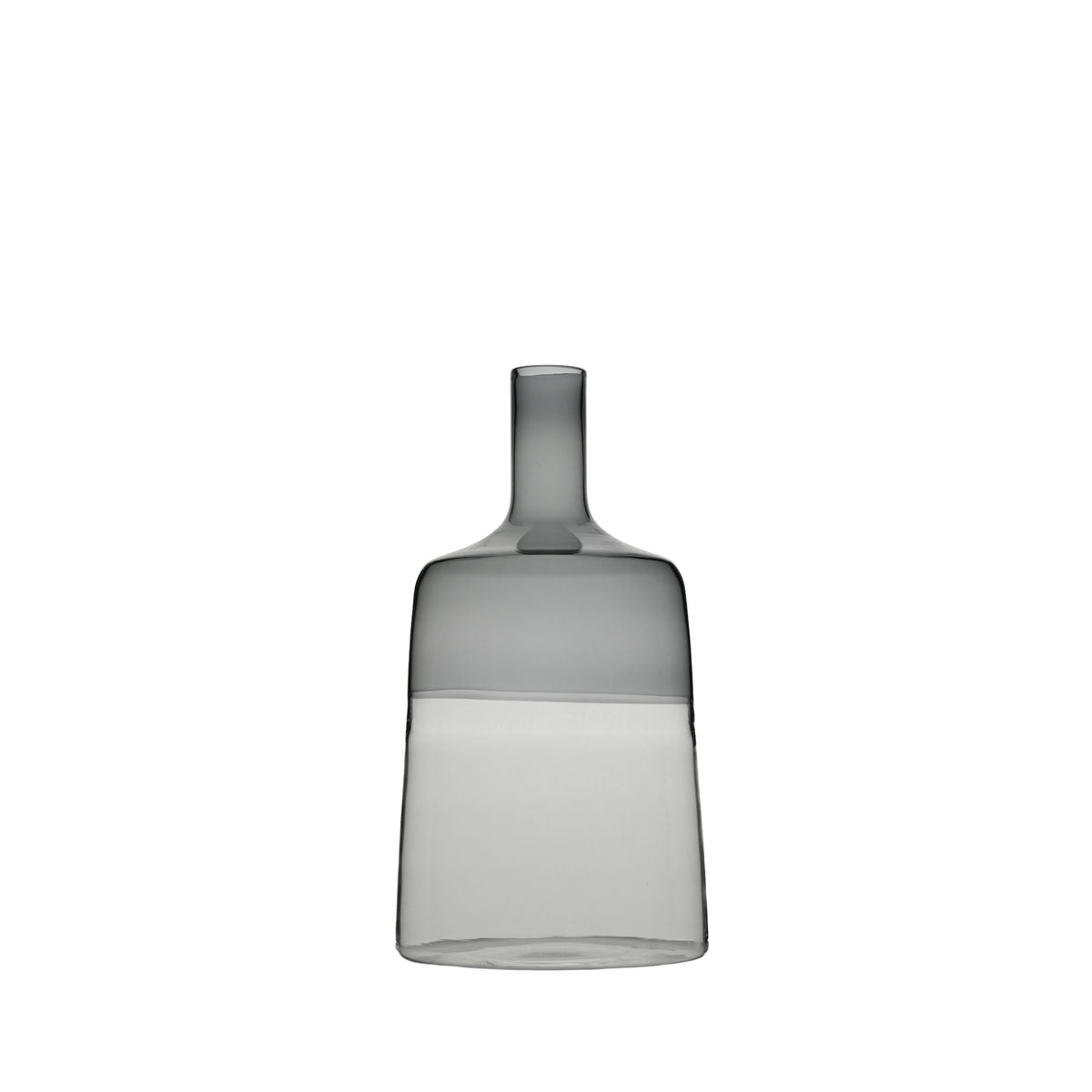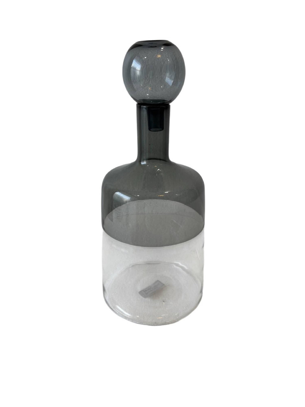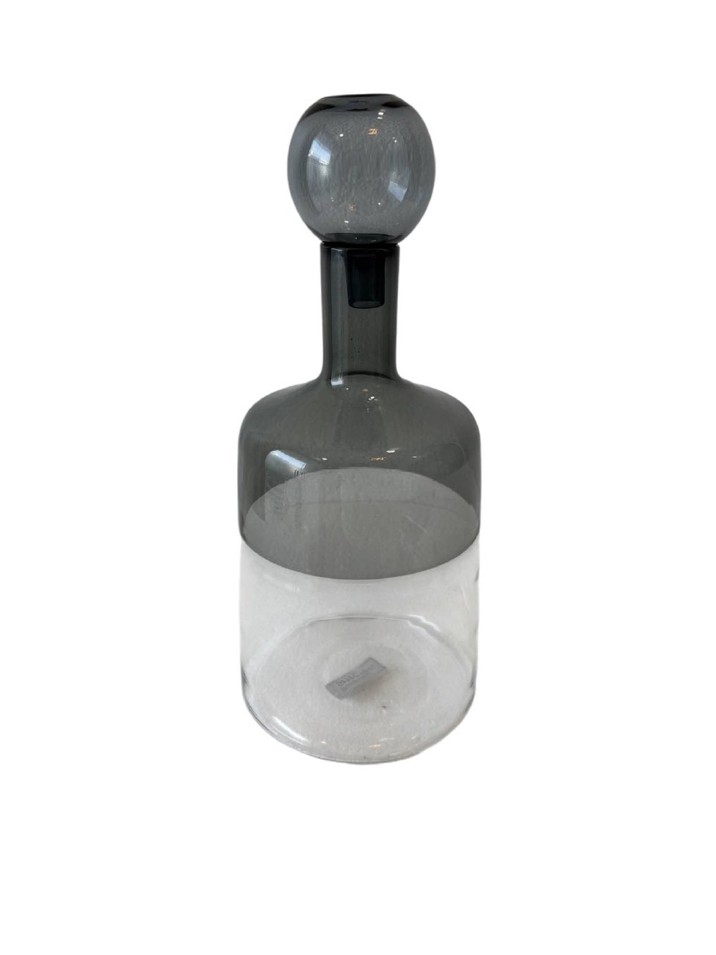 BIDK Decorative Glass Bottle Dia 6" Clear & Gray: Clear & Gray / GLASS