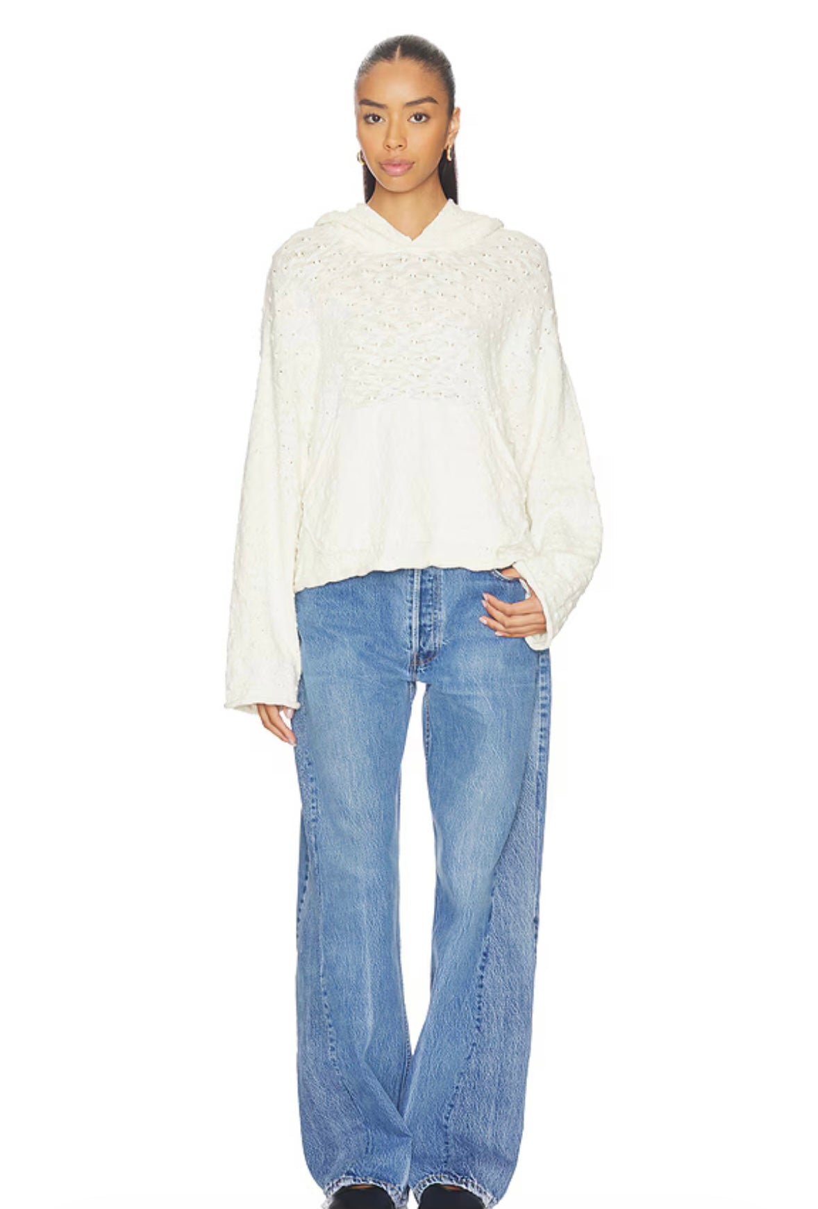 FREE PEOPLE Lake Side Open Knit Hoodie in Marshmallow - XS