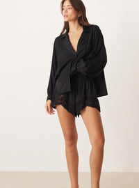 Upgrade your sleepwear with the FREE PEOPLE Midnight Muse Sleep Shirt. Made with luxurious satin material, this black sleep shirt features delicate lace detailing for a touch of sexiness. Feel comfortable and stylish while you sleep and wake up feeling refreshed and ready to conquer your day.