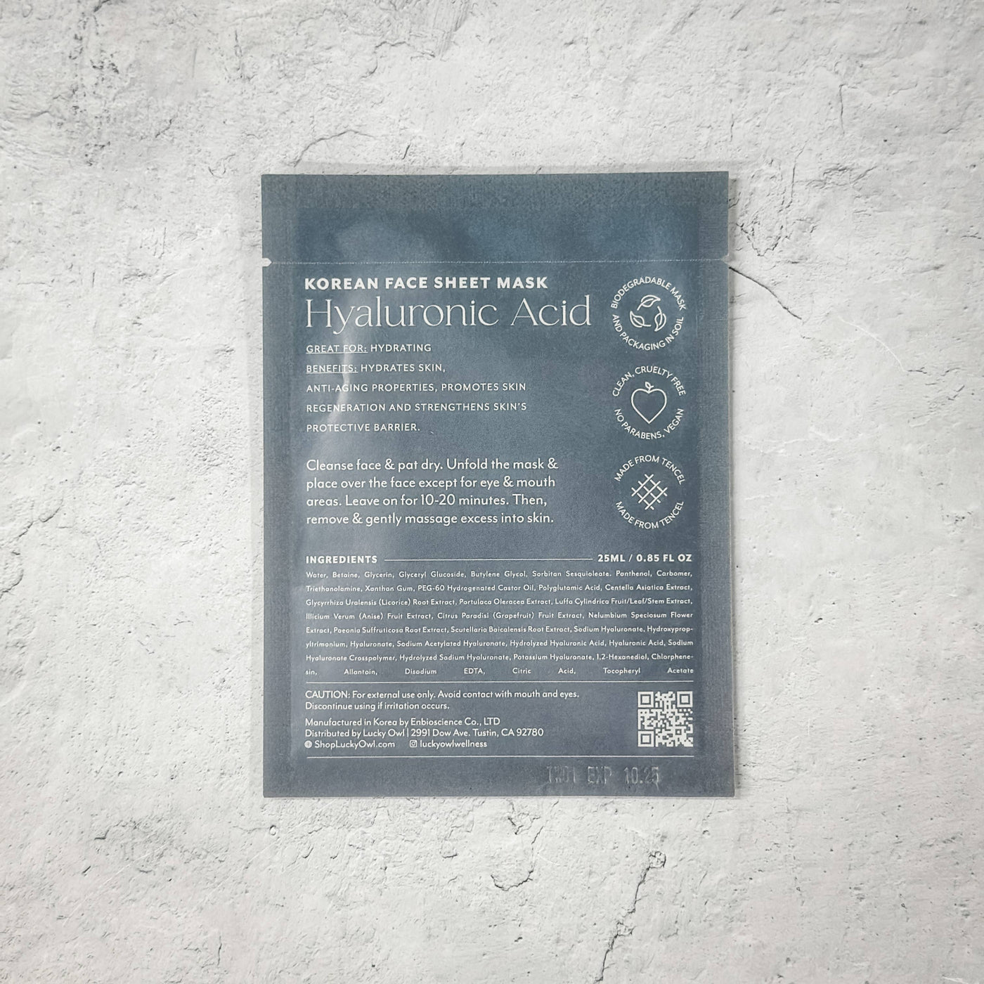 Be your own magic. This sheet mask works like magic, instantly hydrating and moisturizing, leaving skin bouncy and youthful. What it is A hydrating, anti-aging Korean face sheet mask that strengthens the skin's barrier. What it does hydrates skin, anti-aging, promotes skin generation and strengthens skin's protective barrier. Key Ingredients Hyaluronic Acid Skin Type Dry, Aging, Combination How to Use Cleanse face & pat dry. Unfold the mask & place over the face except for eye & mouth areas. Leave on for 10-20 minutes. Then remove & gently massage excess into skin. Use as often as desired. Key Features Made in Seoul, 100% Biodegradable in soil, plastic-free, made with sustainable Tencel, Clean, Cruelty-free, no parabens, vegan, gluten-free.