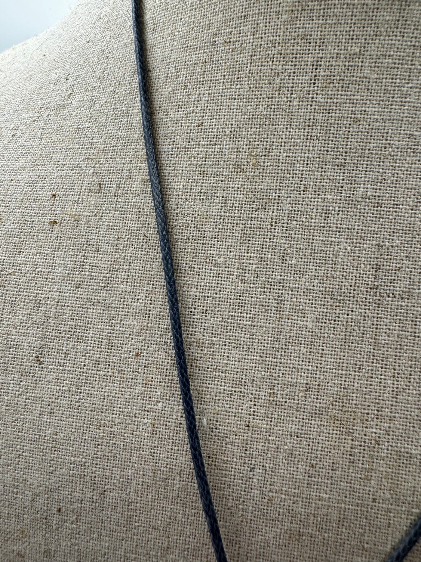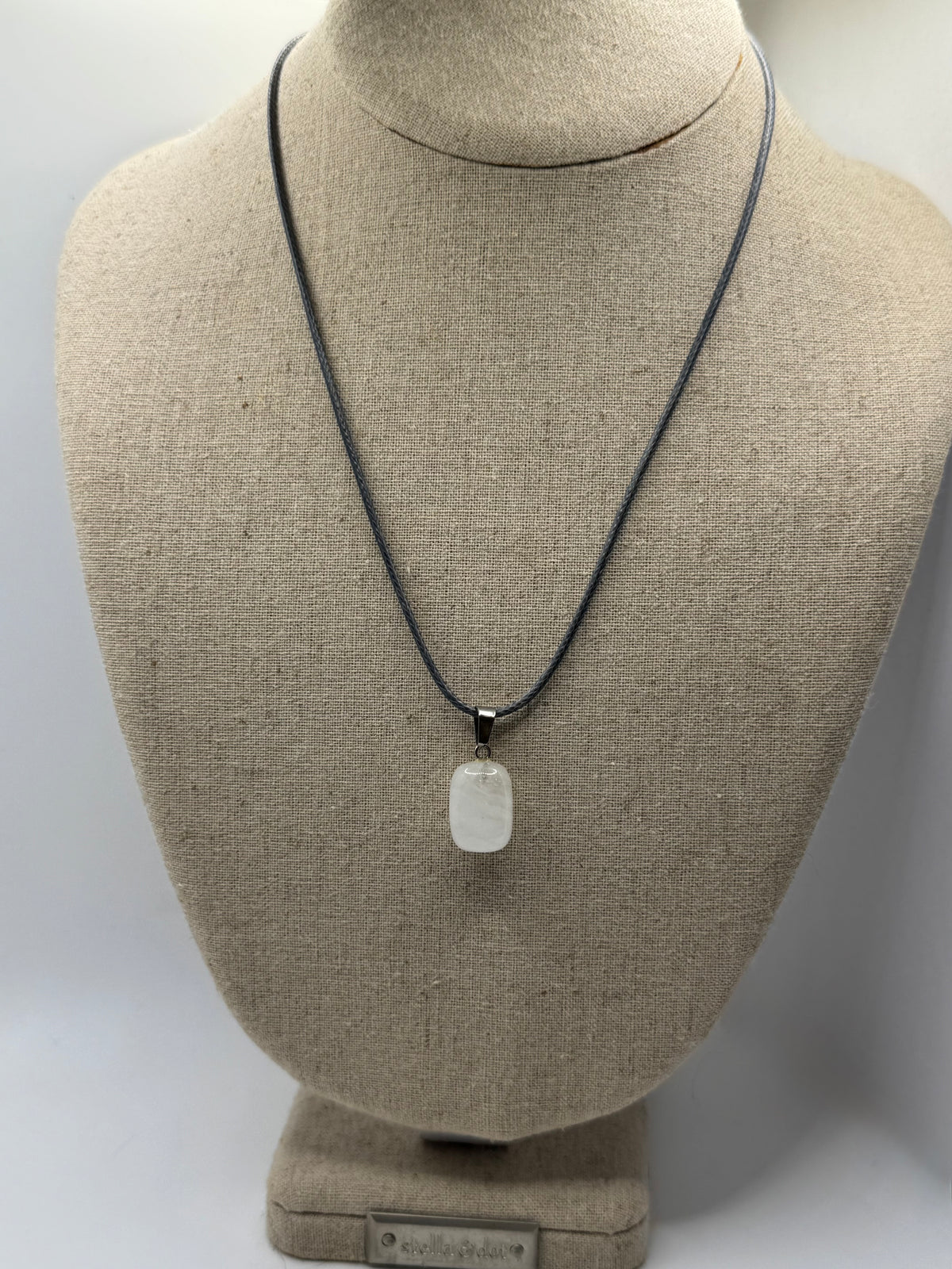 A clean, modern accent with subtle texture. This white stone bar pendant necklace features a softly polished rectangular stone suspended from a braided charcoal cord. The neutral palette and minimal silhouette make it an effortless everyday piece that feels refined without trying too hard.