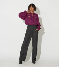 Elevate your wardrobe with the Laurenza Trouser in Black, a versatile and chic choice in luxurious modal satin. These wide-leg trousers exude both style and comfort, featuring pleats on the front for added flair. The relaxed fit and convenient pockets make them suitable for various occasions, whether you're aiming for a sophisticated professional look or a casual ensemble. The Laurenza Trouser is your trusted go-to for a fashionable and comfortable statement piece.