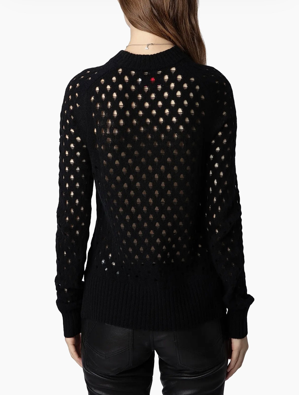 Zadig & Voltaire's Lili Destroy sweater is composed of cashmere-wool pointelle knit.