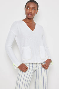 The Beach Lover is made from a soft Cotton Cashmere blend and features hand-stitched contrast details, a split neck and double pockets.