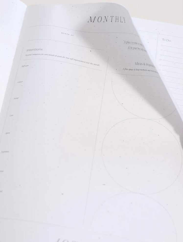 A minimal month planner to set your intentions for the month ahead and then manifest through your plans for the month ahead.