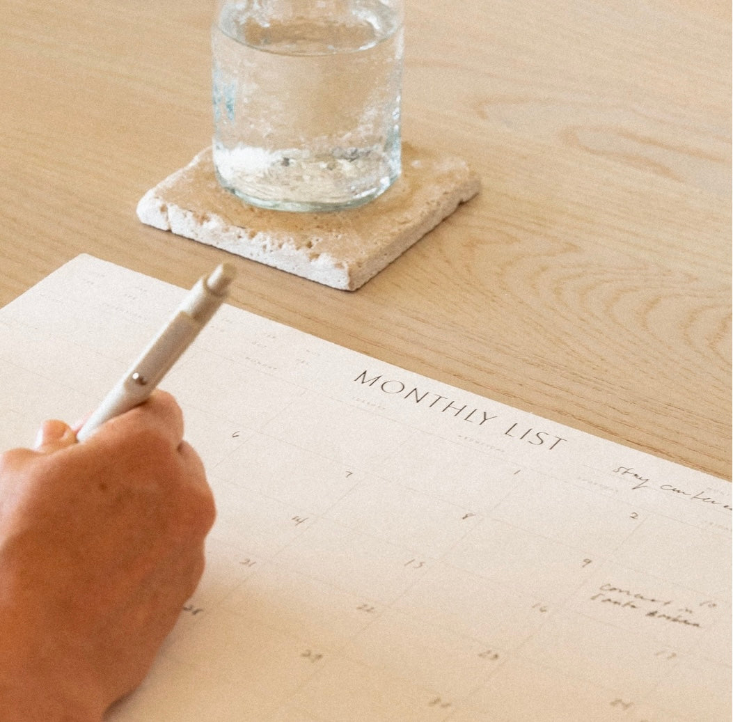 An undated monthly desk planner to set intentions and mindfully structure your month by creating your visual calendar.