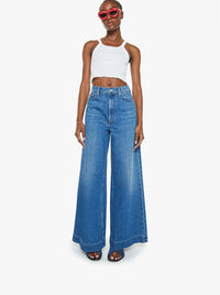 Plant whisperer. Super high-waisted wide leg jeans with a long 32-inch inseam and a clean, wide hem. Cut from rigid SUPERIOR denim, Green Thumb is a classic mid-blue with subtle whiskering and fading at the knees.