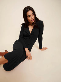 The definition of understated elegance (and a little sexy too). A V-neckline, subtle puff sleeves, full length sleeves and a flattering, eye-catching twisted front. (This one comes in Jet Black.)
