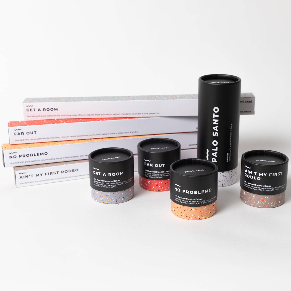Ward off all the evil spirits in your house...or just the evil smells in your bathroom. Sustainably harvested in Ecuador. Comes with approximately 8 pieces. Material: Palo Santo Dimensions: approximately 4" long x .5" wide (per stick)