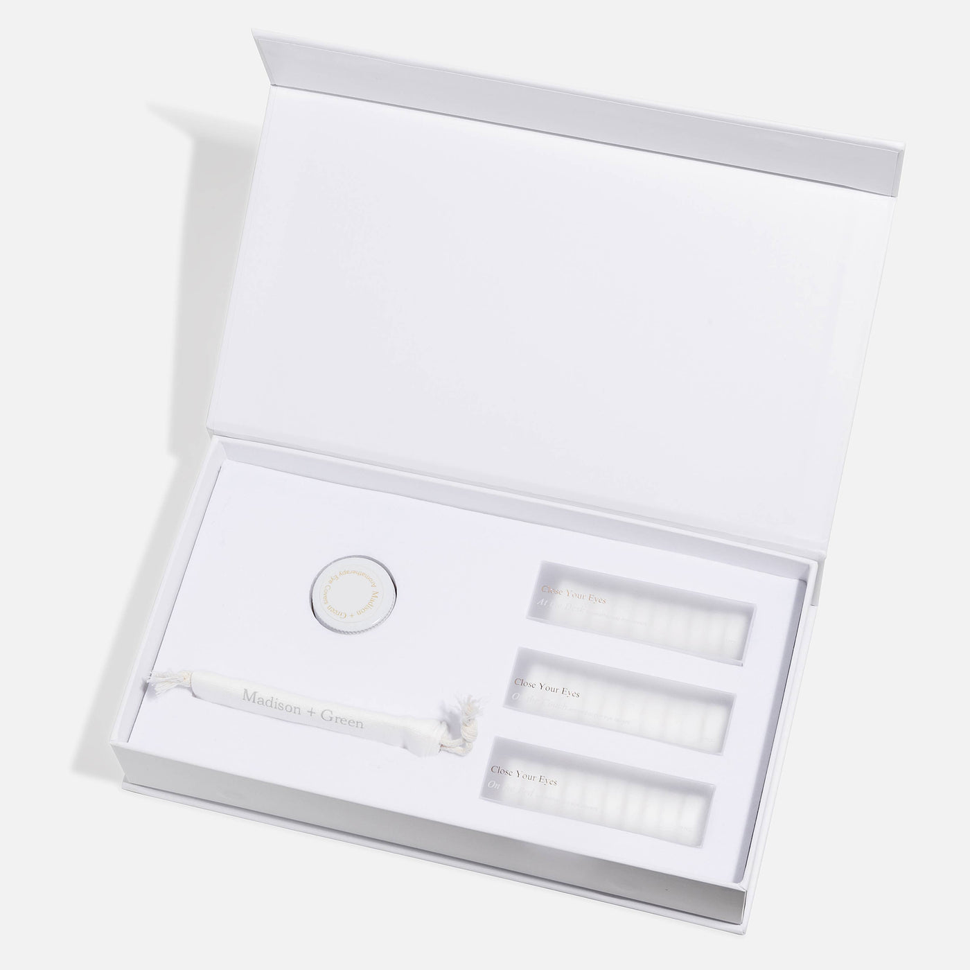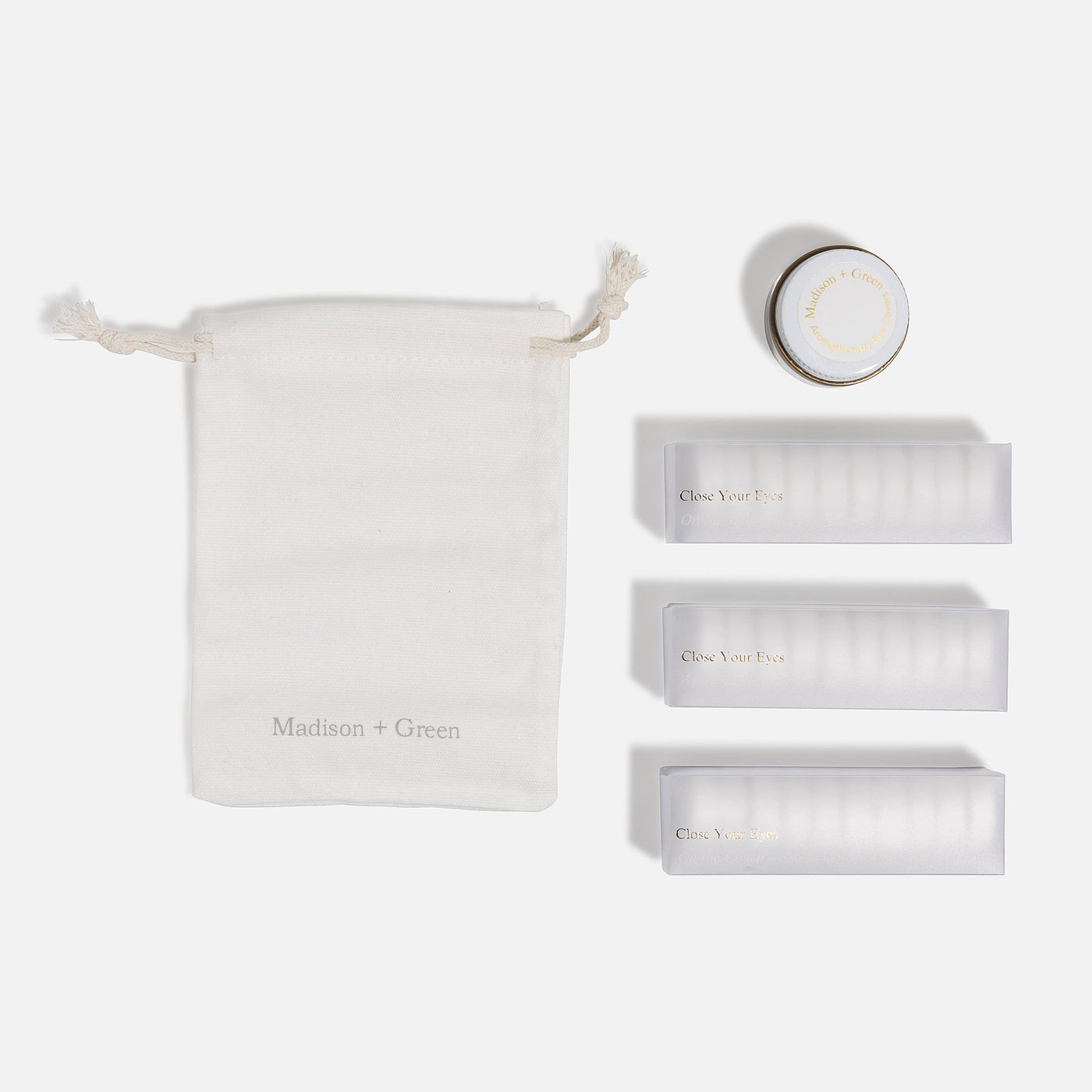 Rest Your Eyes Collection consists of compressed tablets of aromatherapy eye covers that activates when in contact with water. Pre-scented with essential oils, the tablets provide an opportunity to close the tired eyes, while offering therapeutic aromatherapy. The towels can be re-used by adding water until the scent loses its strength. The gold-foiled, gift-ready boxes with magnetic closures come with 10 pieces each of At the Desk, On the Couch, and On the Bed (total 30 pieces) tablets. Below are the links to each of the scent: At the Desk - https://www.faire.com/product/p_rtuyqu3sf5?bRef On the Couch - https://www.faire.com/product/p_2ytjseyzg3?bRefP=p_rtuyqu3sf5&refB=1 On the Bed - https://www.faire.com/product/p_383jajzvay?bRefP=p_rtuyqu3sf5&refB=1 All orders will include a free display kit that shows how the product works.