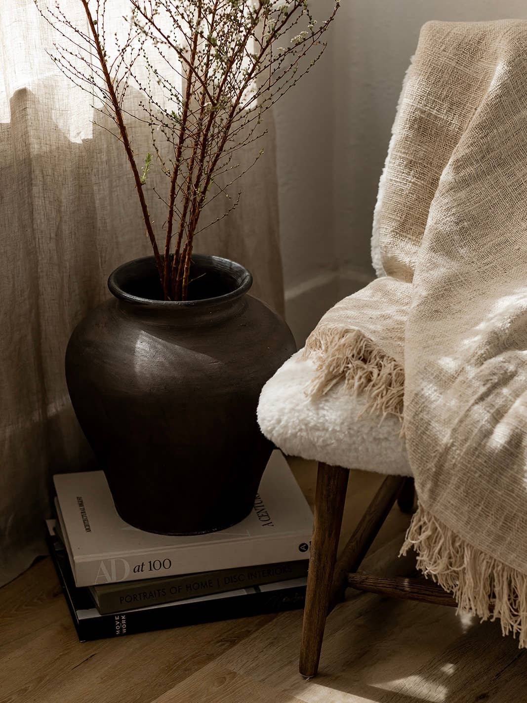 Radiating a blend of earthy tones, the Santiago Vase serves as an ideal vessel for showcasing gracefully arched branches or a variety of botanicals. Expertly hand-spun to achieve a subtly rounded silhouette, it displays an elegance that captivates from every angle. Available in a selection of espresso and the newly introduced taupe, this vase maintains a natural and understated aesthetic, making it a favored accent piece. The Santiago Vase in Taupe is a featured piece in our new collection - The Collector's Edition. Dimensions: 11"L x 11"W x 14"H Our products are entirely handmade by skilled artisans, ensuring that each piece is one-of-a-kind. Given the inherent characteristics of natural materials, some variation is to be expected. These variations may include, but are not limited to, subtle differences in color, texture, and dimensions. Best styled as decorative pieces. Please refrain from adding water to the vase, as its clay composition is susceptible to damage from moisture.