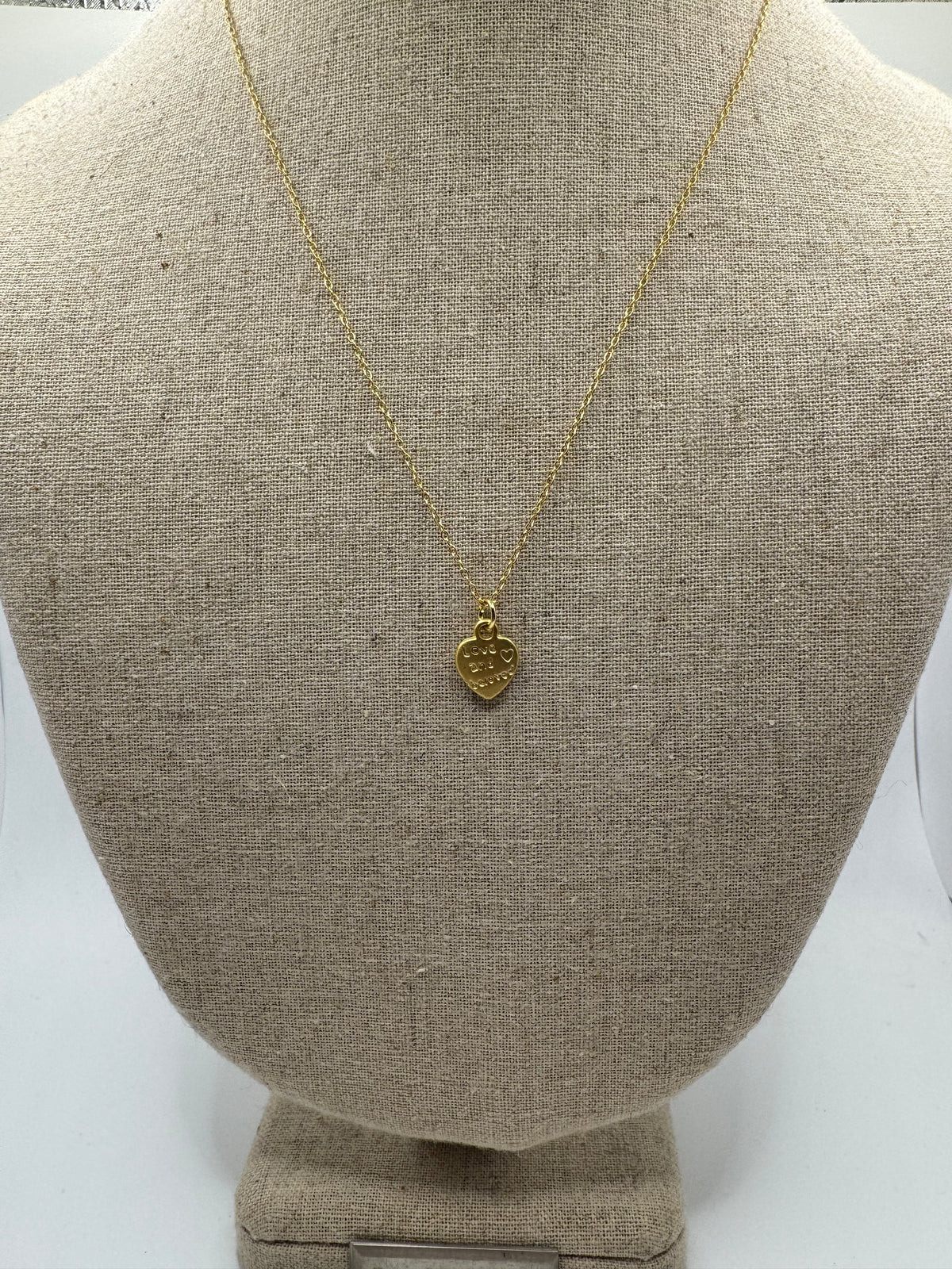 A delicate reminder of what matters most. The Love & Devotion Necklace features a petite gold-tone heart charm engraved with the words “love and devotion,” suspended from a fine, understated chain. Timeless and quietly meaningful, it’s designed to be worn every day—layered or alone—as a subtle expression of sentiment and style.