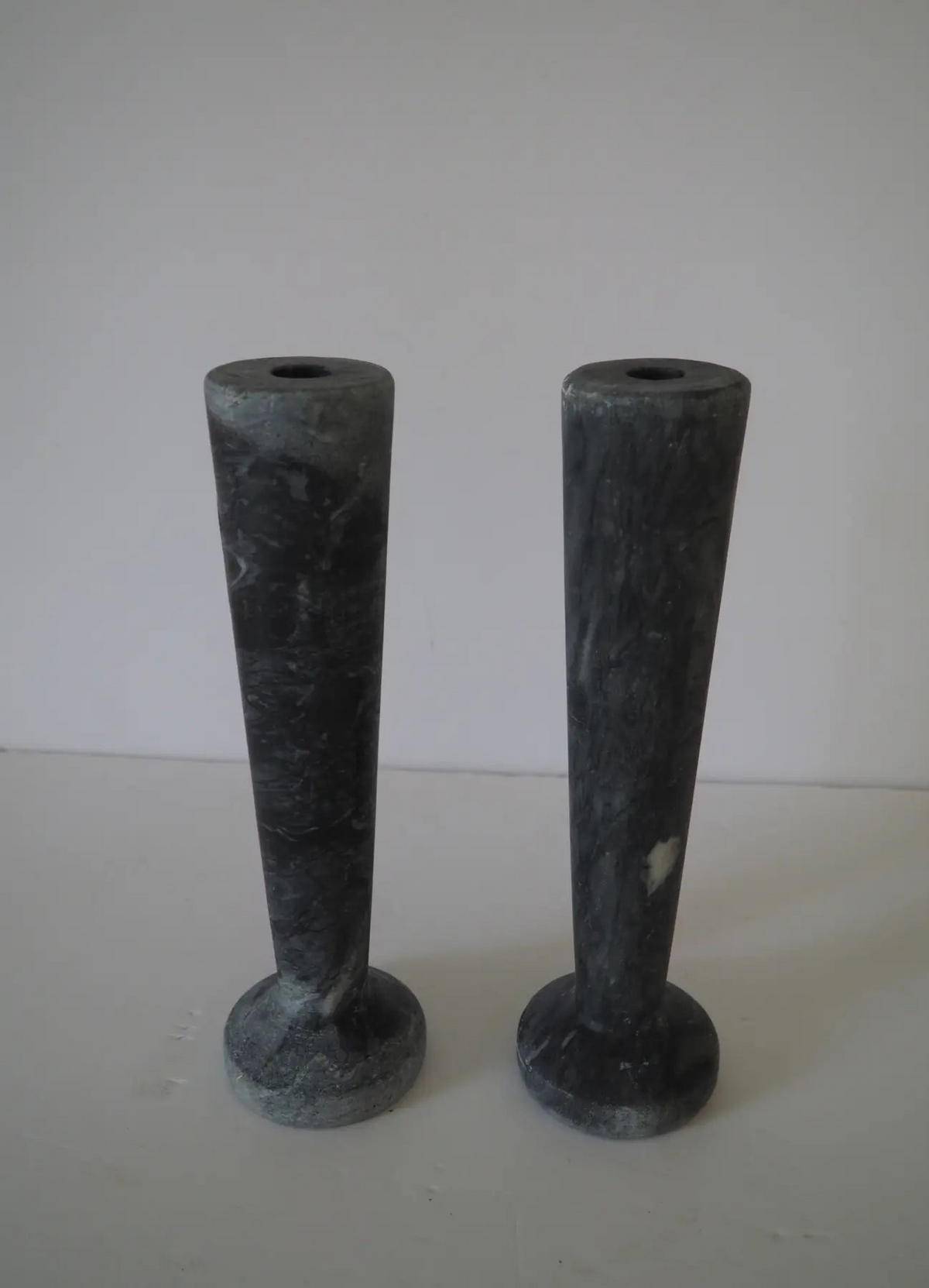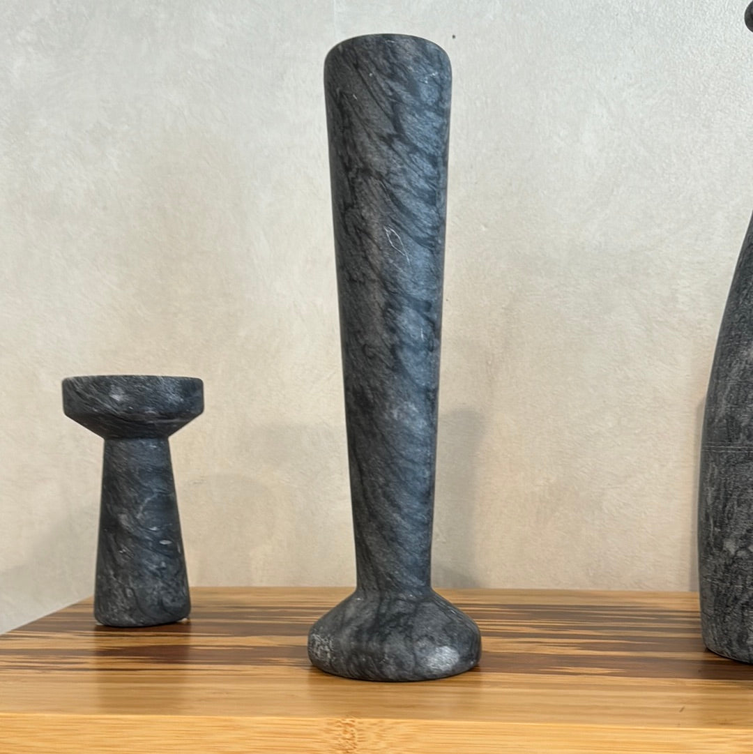 Large Nior candleholder is hand carved of solid marble in Grey. Waxed finish. Can be used for both taper and pillar candles.