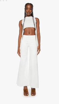 Mirror, mirror. This iconic high-waisted wide leg has a 31-inch inseam and a frayed hem. Made from stretch fabric, Fairest Of Them All is our bestselling white denim.